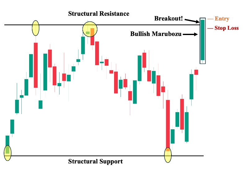 - Giao dịch tại vùng hỗ trợ/kháng cự: Marubozu thể hiện sự dứt khoát, nhưng nếu nó chỉ là một phần nhỏ của sự biến động lớn tại vùng cung/cầu, nó có thể là tín hiệu tạm thời.